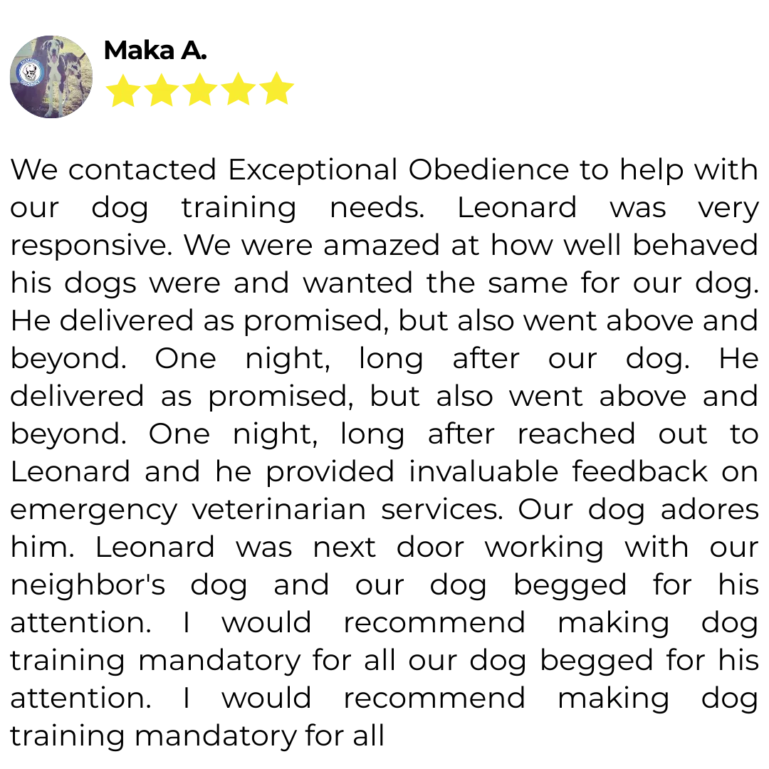 🐾 Next-Step Training Recommendations If we’re the right fit, you’ll know exactly what comes next to turn your dog into the well-behaved pet you’ve always wanted.